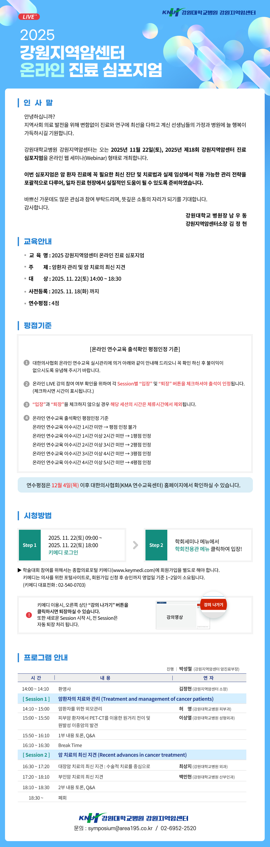 공지 2025년 제18회 강원지역 암진료 온라인 심포지엄