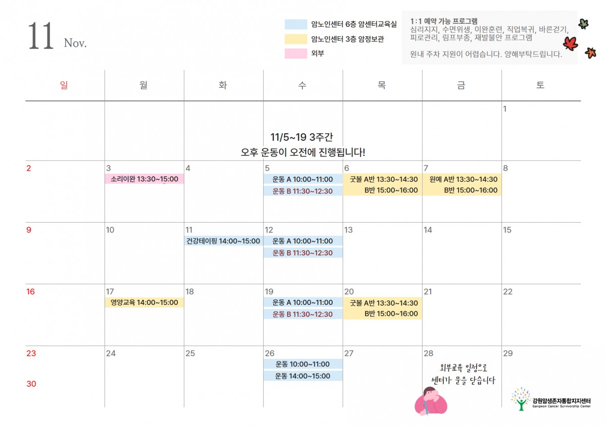 따라서 이번 11월이 올해 마지막 프로그램이 있는 달이 되겠네요!