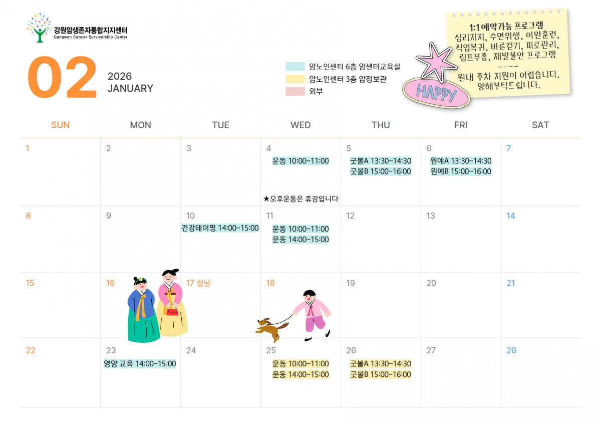 ★2월 4일(수) 오후 운동은 강사님 해외일정으로 운영되지 않습니다.