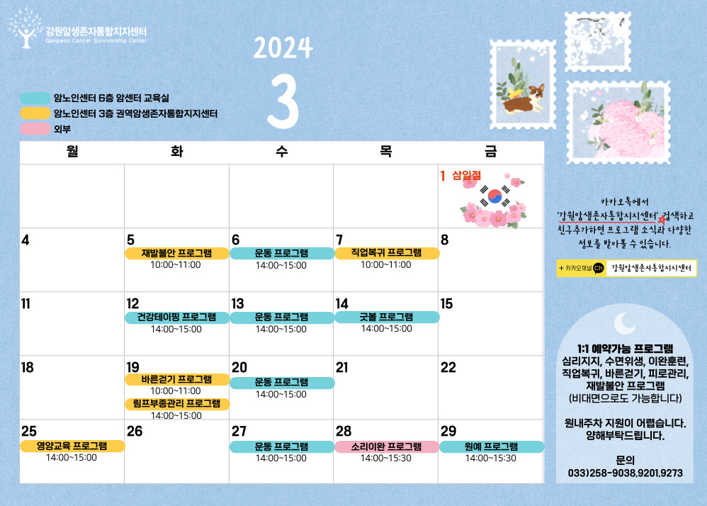 교육안내 2024년 3월 암생존자 통합지지 프로그램 일정 안내